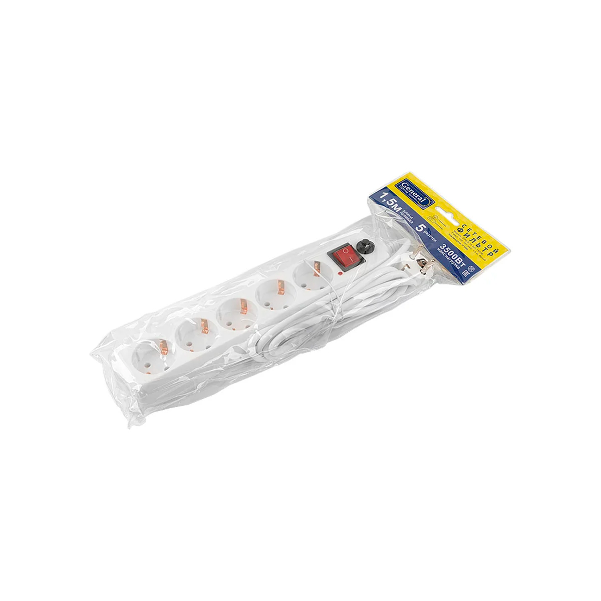 Сетевой фильтр 5 гнезд 1,5м белый General