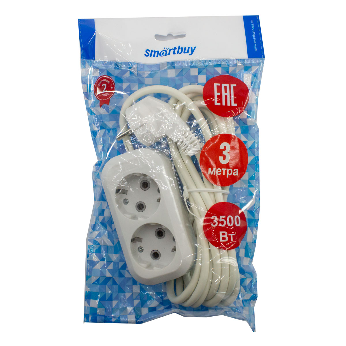 Удлинитель 2 гнезда 3м 16А Smartbuy