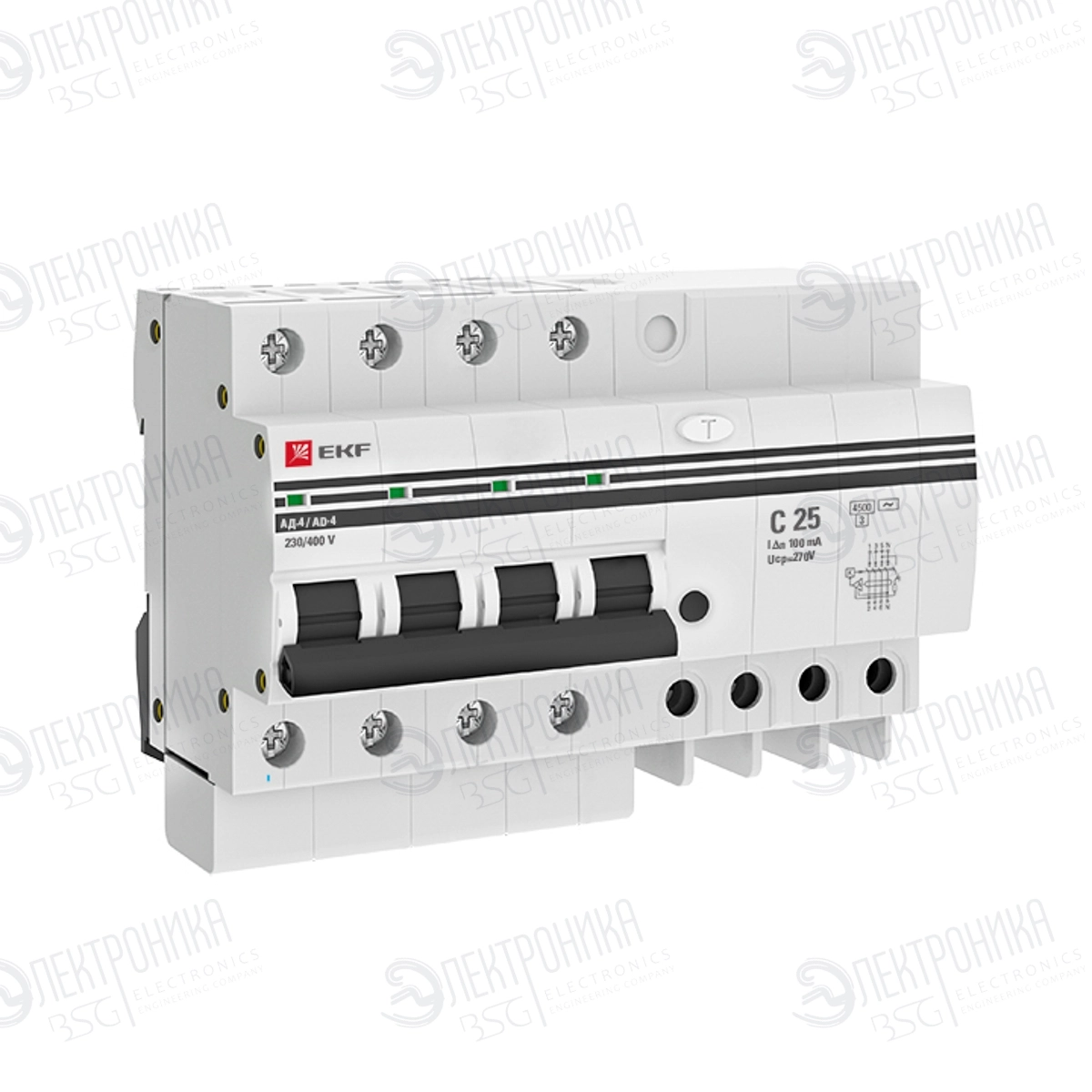Автоматический выключатель дифференциального тока 4P 25А 100мА АД4 х-ка C EKF