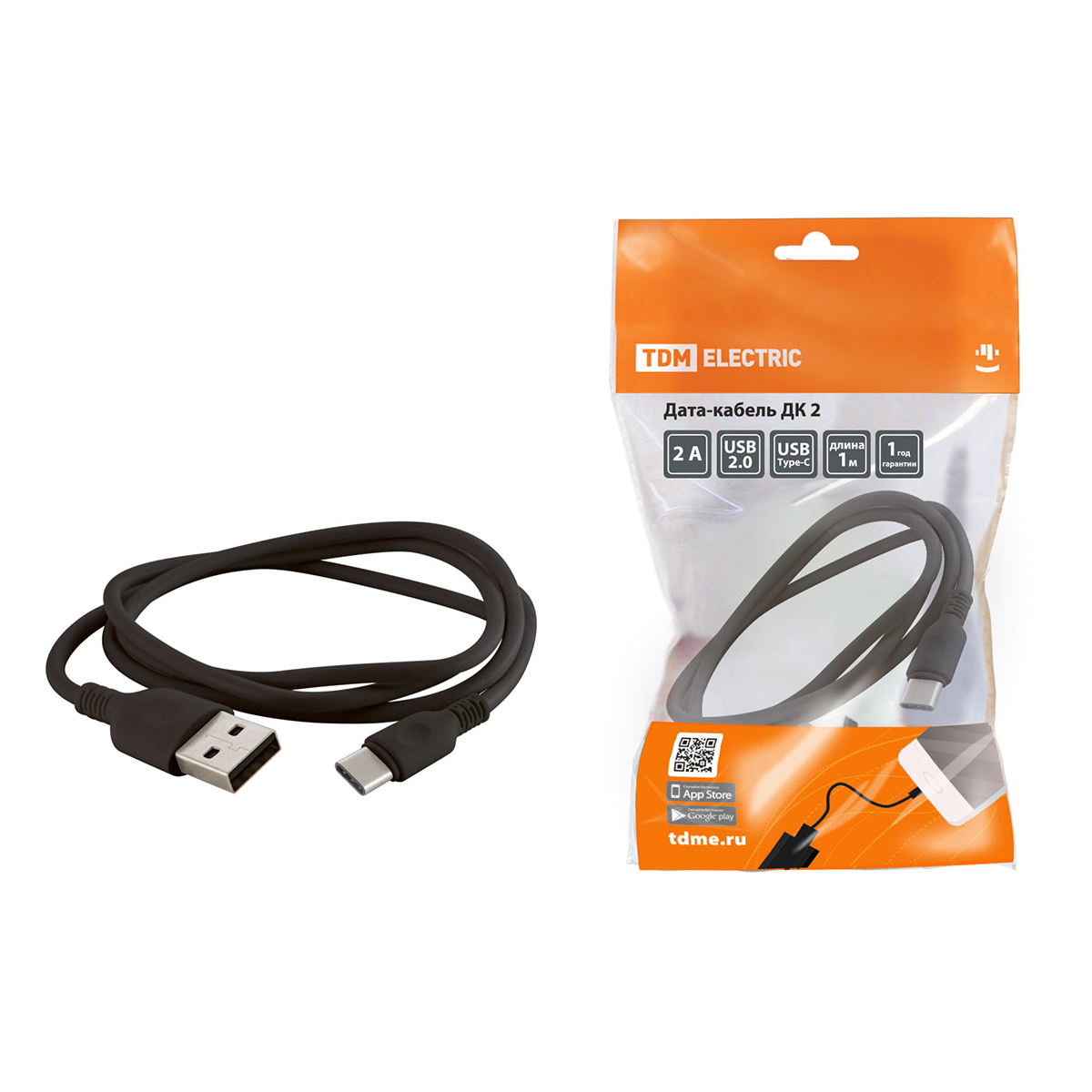 Шнур USB A - USB TYPE C 1,0 м (шт-шт) черный