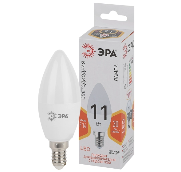 Лампа светодиодная ЭРА STD LED B35-11W-827-E14 11Вт свеча теплый белый свет Е14
