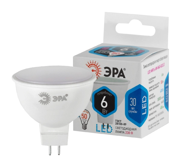 Лампа светодиодная ЭРА STD LED MR16-6W-840-GU5.3 6Вт софит нейтральный белый свeт GU5.3