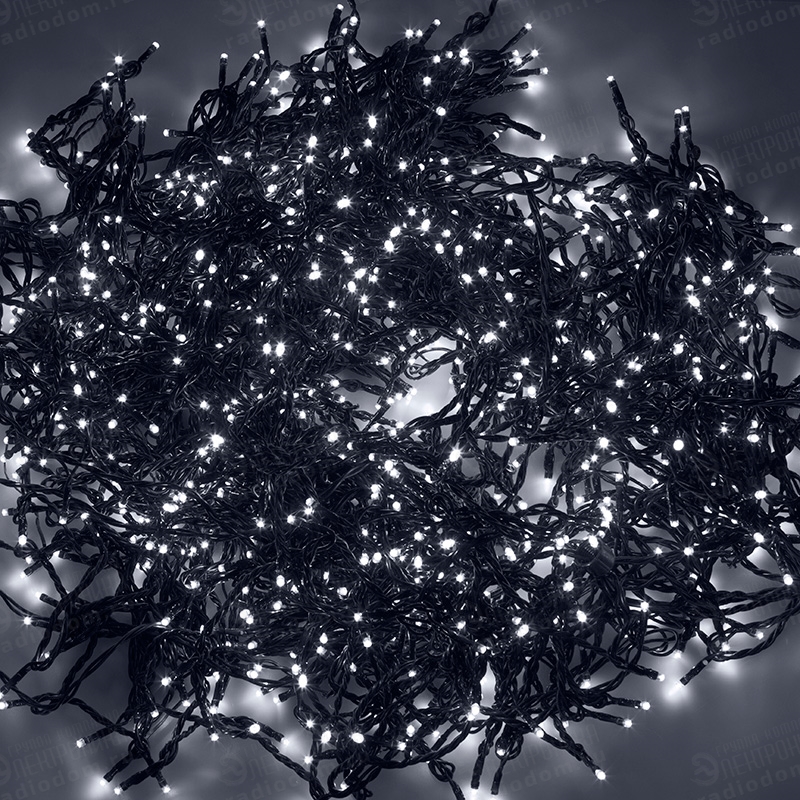 Гирлянда светодиодная 5 нитей x20м 665LED белая-мерцающая, провод черный ''Клип Лайт Спайдер Каучук'' 24В с трансформатором 323-605 Неон-Найт