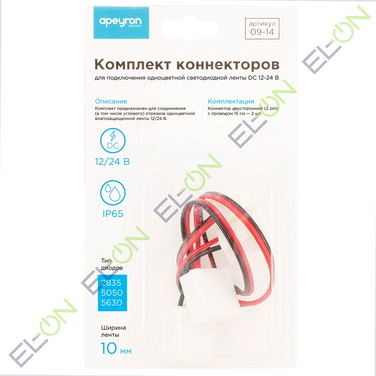 Комплект коннекторов 10мм (2 клипсы с проводами) IP20 Apeyron