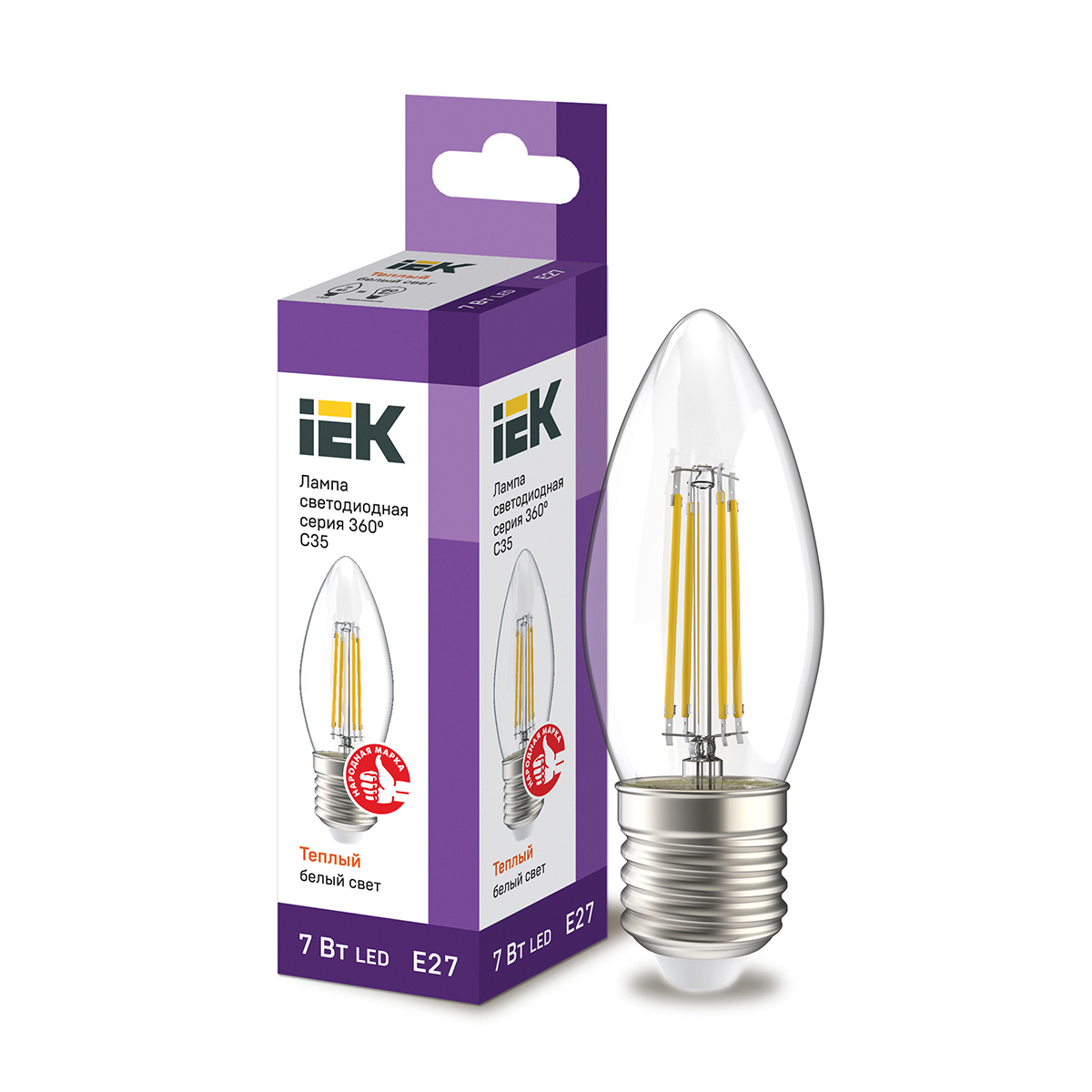 Лампа светодиодная 220В E27 7,0Вт, 360°, C35, белый теплый 3000K, iEK LLF-C35-7-230-30-E27-CL