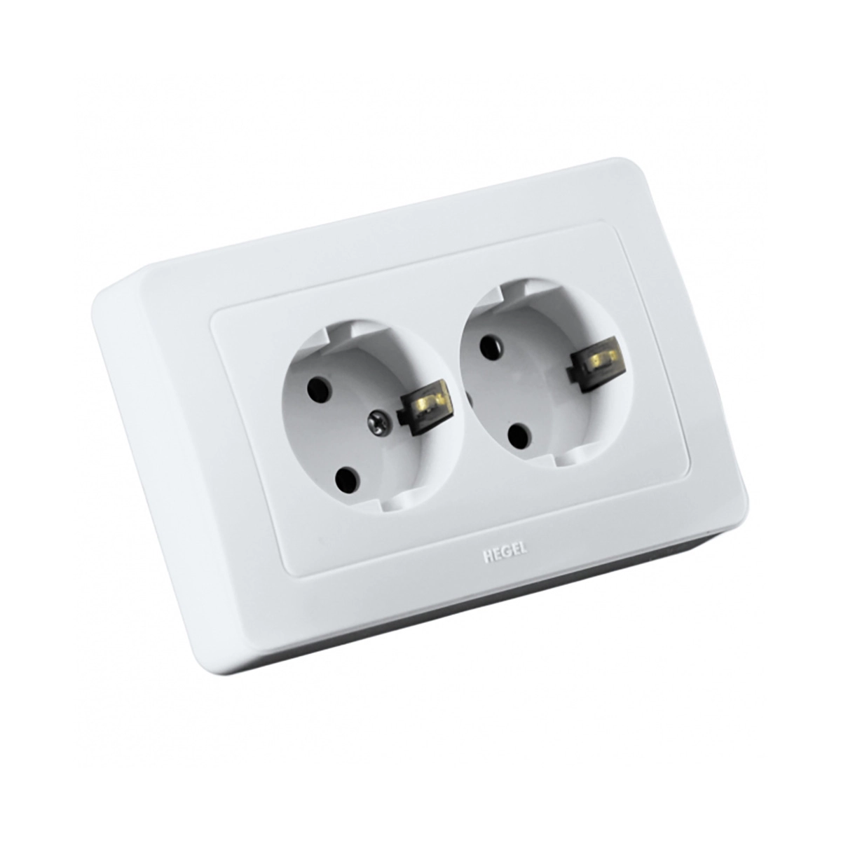 Розетка скрытая с заземлением двойная белая Мастер HEGEL